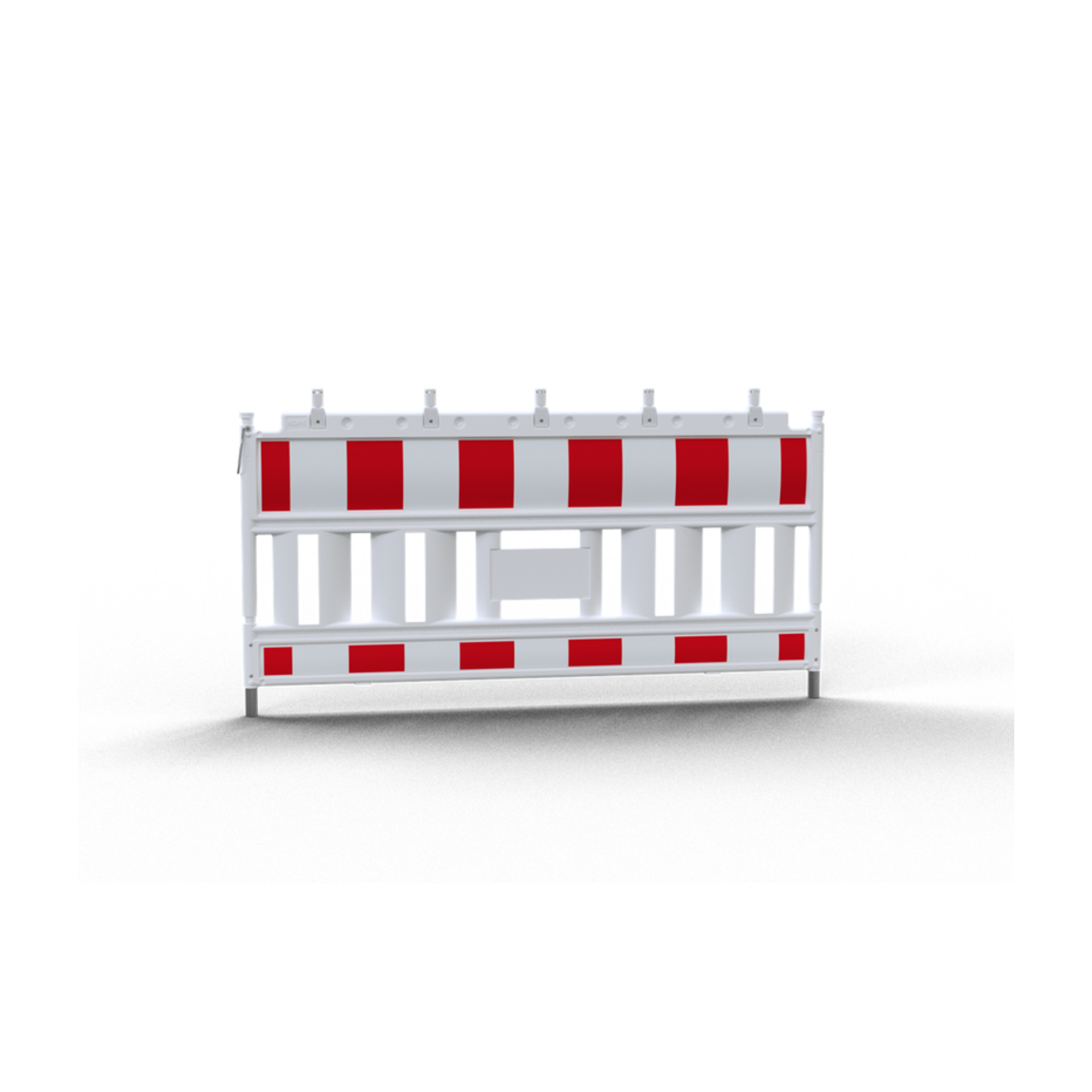 Das Absperrschrankengitter Typ NOX besteht aus UV-beständigem, schlagzähem Kunststoff und ist geprüft nach TL Absperrtechnik 97. Mit einer Länge von 2,00 m erfüllt es die Anforderungen der ZTV-SA und bietet durch das durchgehende Standrohr eine besonders hohe Stabilität. Ein integrierter Handgriff sorgt für komfortables Handling. Seitlich angebrachte Verbindungsbügel ermöglichen eine einfache Kopplung mehrerer Gitterelemente. Die Ausführung ist mit einer reflektierenden RA1-Folie ausgestattet.