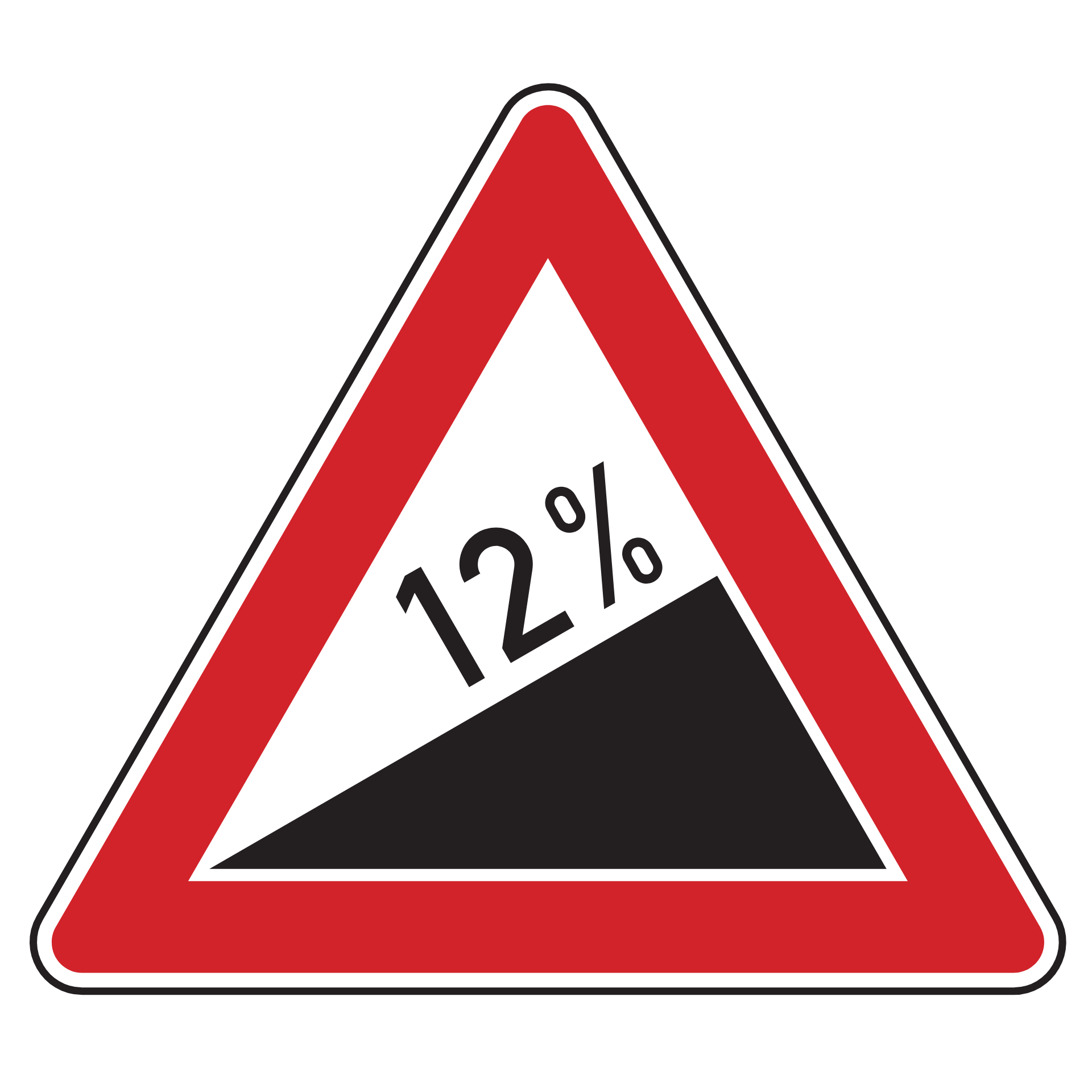 Dieses Verkehrszeichen weist auf eine gefährliche Steigung im weiteren Straßenverlauf hin. Die Gefahrenstelle entsteht durch eine starke Neigung, deren Länge oder Steilheit leicht unterschätzt werden kann oder nicht rechtzeitig erkennbar ist. Das Warnzeichen allein reicht nicht aus, um den Verkehrsfluss sicher zu regeln, weshalb zusätzlich ein Zusatzzeichen zur Angabe der Streckenlänge eingesetzt werden kann. Es werden ausschließlich volle Prozentwerte zur Steigungsangabe verwendet.