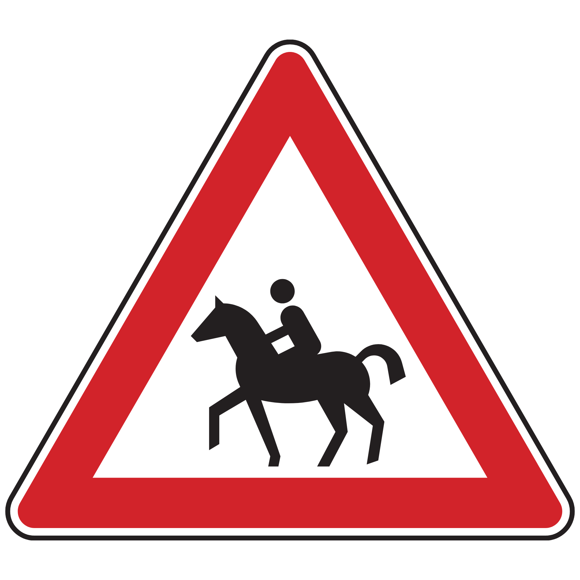Dieses Verkehrszeichen weist auf Bereiche hin, in denen Reiter die Fahrbahn kreuzen können. Es warnt vor möglichen Gefahrensituationen im Zusammenhang mit Reitbetrieb in Straßennähe. Das Zeichen wird am rechten Fahrbahnrand aufgestellt.