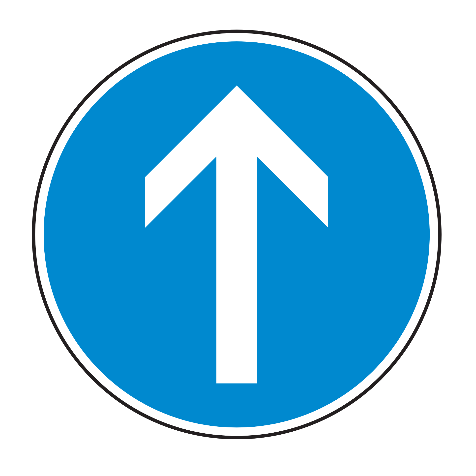 Dieses Verkehrszeichen zeigt an, dass an Kreuzungen oder Einmündungen die Fahrtrichtung geradeaus vorgeschrieben ist. Fahrzeugführer sind verpflichtet, dieser Fahrtrichtung zu folgen.