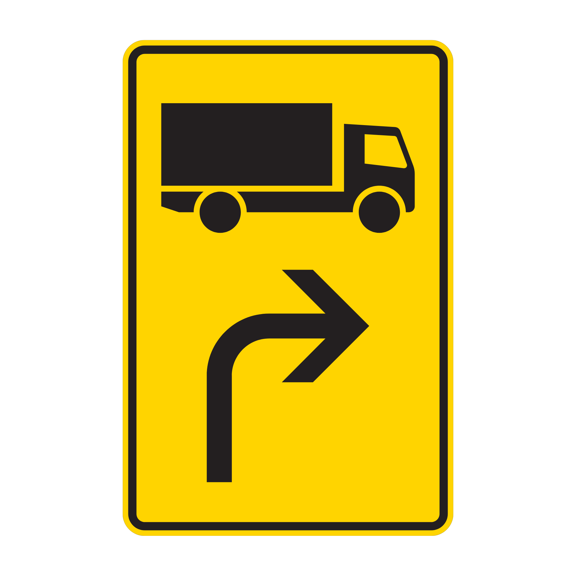 Das Verkehrszeichen 442-20 weist Fahrzeuge mit einer zulässigen Gesamtmasse über 3,5t im Voraus auf eine rechtsweisende Fahrtrichtung hin. Es wird zur frühzeitigen Orientierung und sicheren Führung des Schwerverkehrs vor Abzweigungen oder Kreisverkehren eingesetzt.