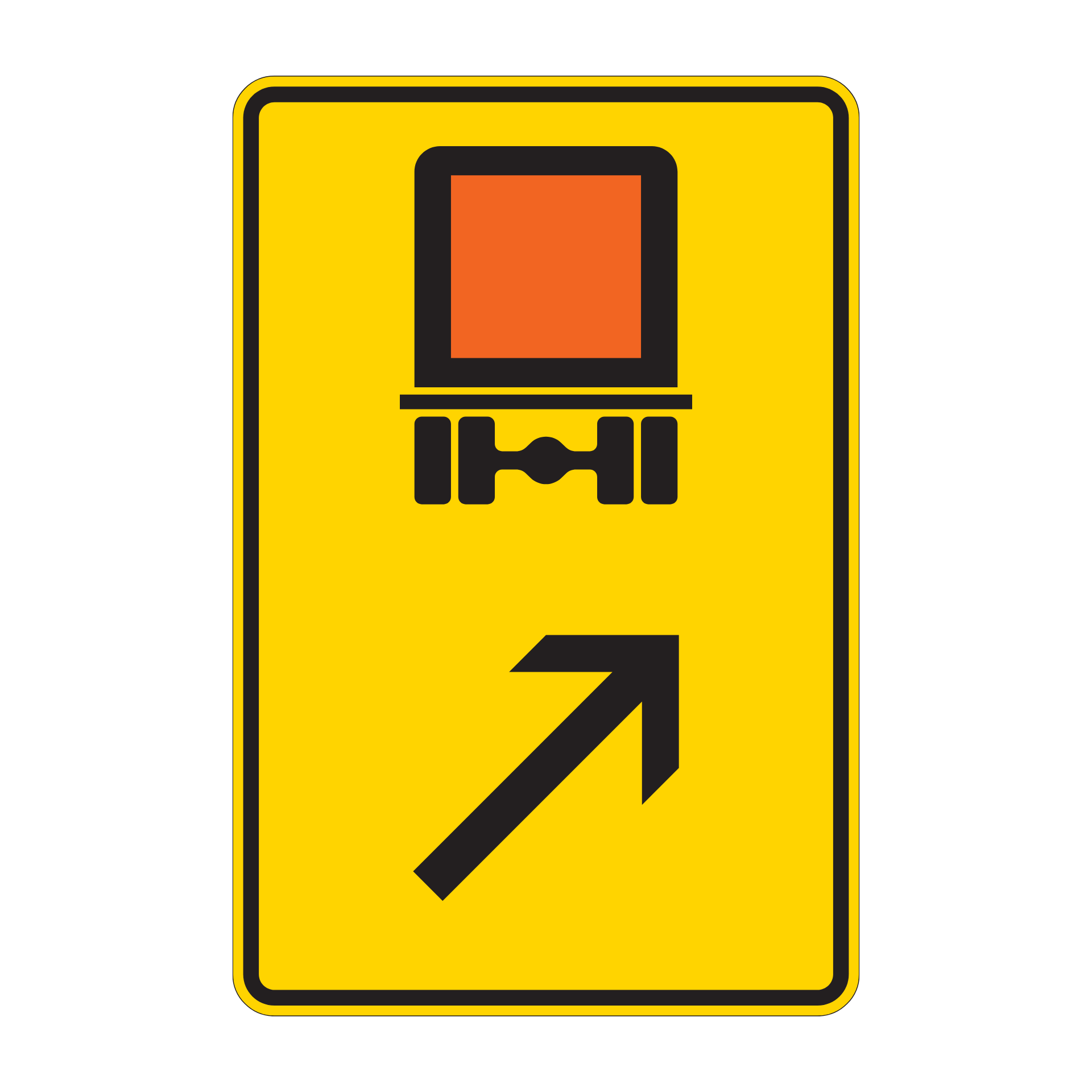 Das Verkehrszeichen 422-23 weist kennzeichnungspflichtige Fahrzeuge mit gefährlichen Gütern an, sich rechts einzuordnen. Es wird zur gezielten Lenkung des Gefahrgutverkehrs eingesetzt – insbesondere vor Fahrbahnwechseln, Abzweigungen oder speziell ausgewiesenen Routen.